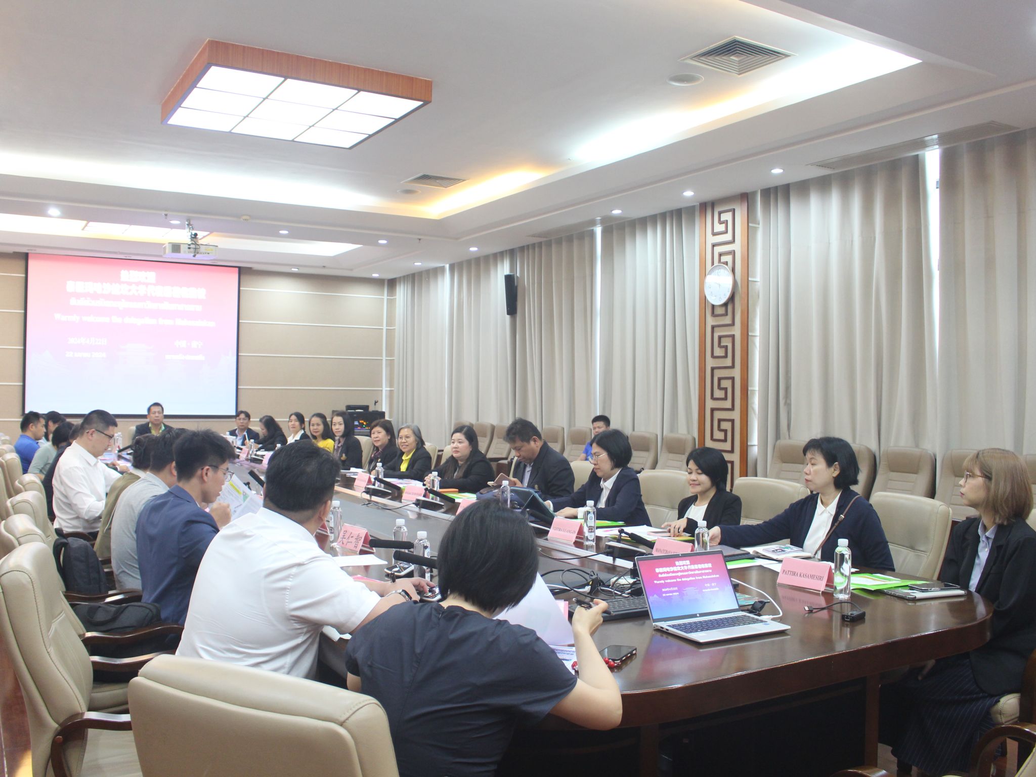 姜明国向代表团介绍了必威西汉姆联本科生、研究生培养的情况以及国际交流合作情况。泰国玛哈沙拉坎大学技术学院院长SUMONWAN介绍了代表团成员及来访目的。双方就学生联合培养、国际课程共建、科研项目合作和人员互访等事项展开了深入的交流探讨。