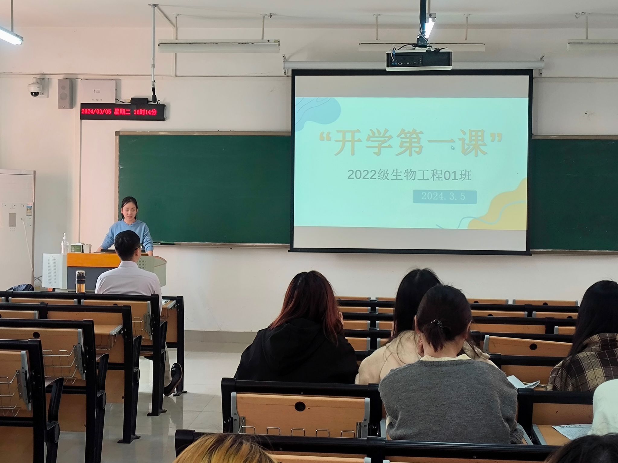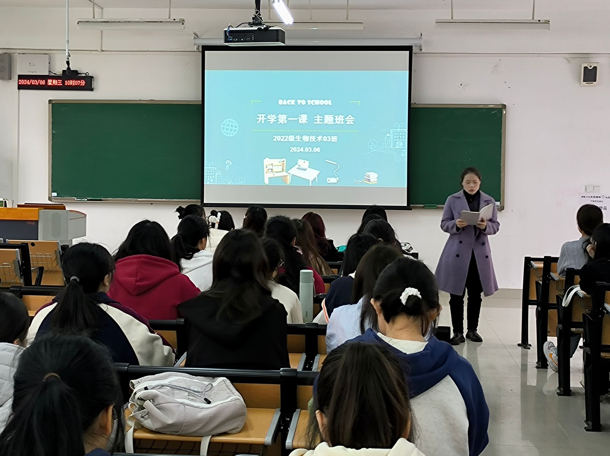 各班在班主任、班干的带领下积极开展主题班会,班会以“青春之我创造青春之中国”为主题,引导同学们踊跃发言,认真学习。班会活动的主要内容包括加强大学生思想政治教育和价值引领、加强学生安全教育、加强学生诚信、廉洁、文明和法治教育等内容。班会上,各班班主任以领航者的角色对同学们在生活、学习、交往等方面提出指导性的建议,以帮助同学们在大学中寻找适合的学习方法,做好未来的人生规划。此外,各班级还鼓励学生分享关于“讲文明,守礼仪,树新风”的先进事迹,希望同学们能从中学习优良的品德作风,提高个人素养。