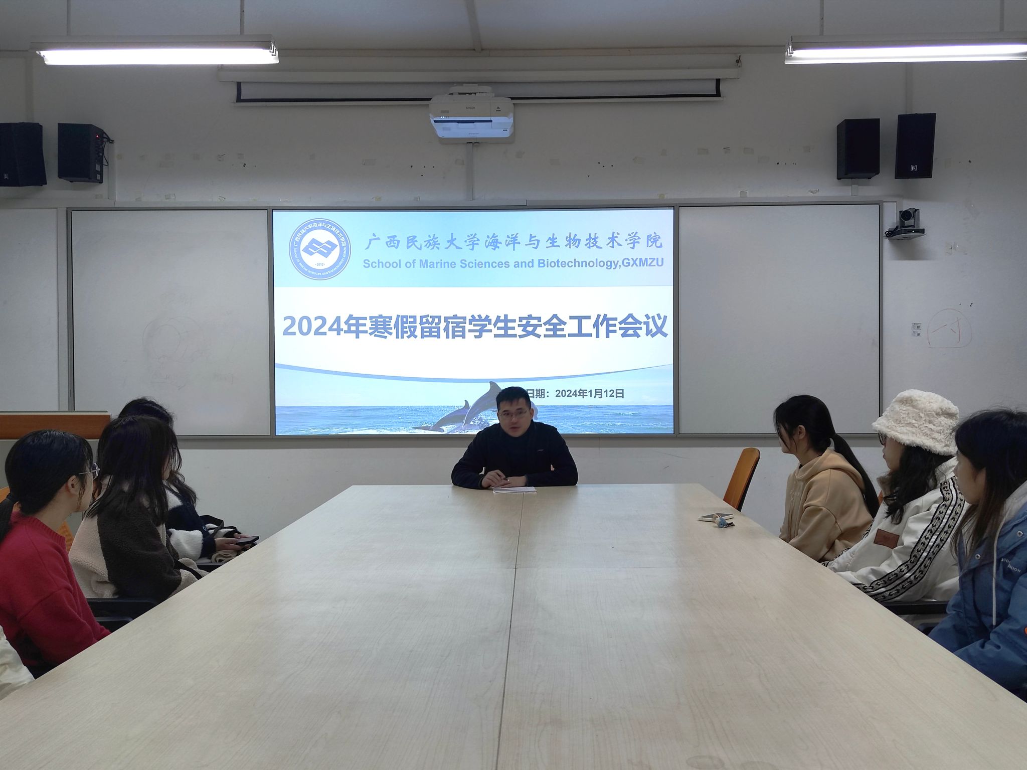 为加强我院2024年寒假留宿学生的安全管理工作,提高学生的安全防范意识,1月12日,我院于明德楼123会议室召开2024年寒假留宿学生安全工作会议,本次会议由辅导员林南新主持,全体寒假留宿本科生参加本次会议。