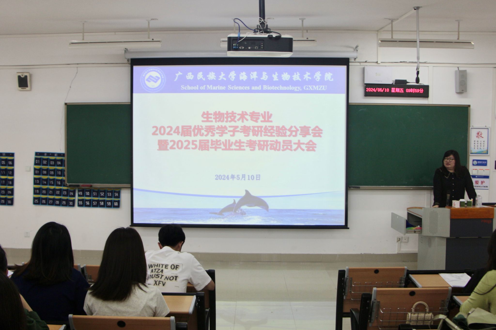 为进一步调动生物技术专业2025届毕业生的考研积极性,持续营造良好的学风院风,2024年5月10日,我院生物技术系在明德楼510会议室召开2024届优秀学子考研经验分享会暨2025届毕业生考研动员大会。副院长张琴、生物技术系主任许剑、2021级生物技术班主任、生物技术系高乞、冯昌章、叶芬等专任教师、2020级生物技术专业学生代表及2021级生物技术专业全体学生参加。本次大会由许剑主持。