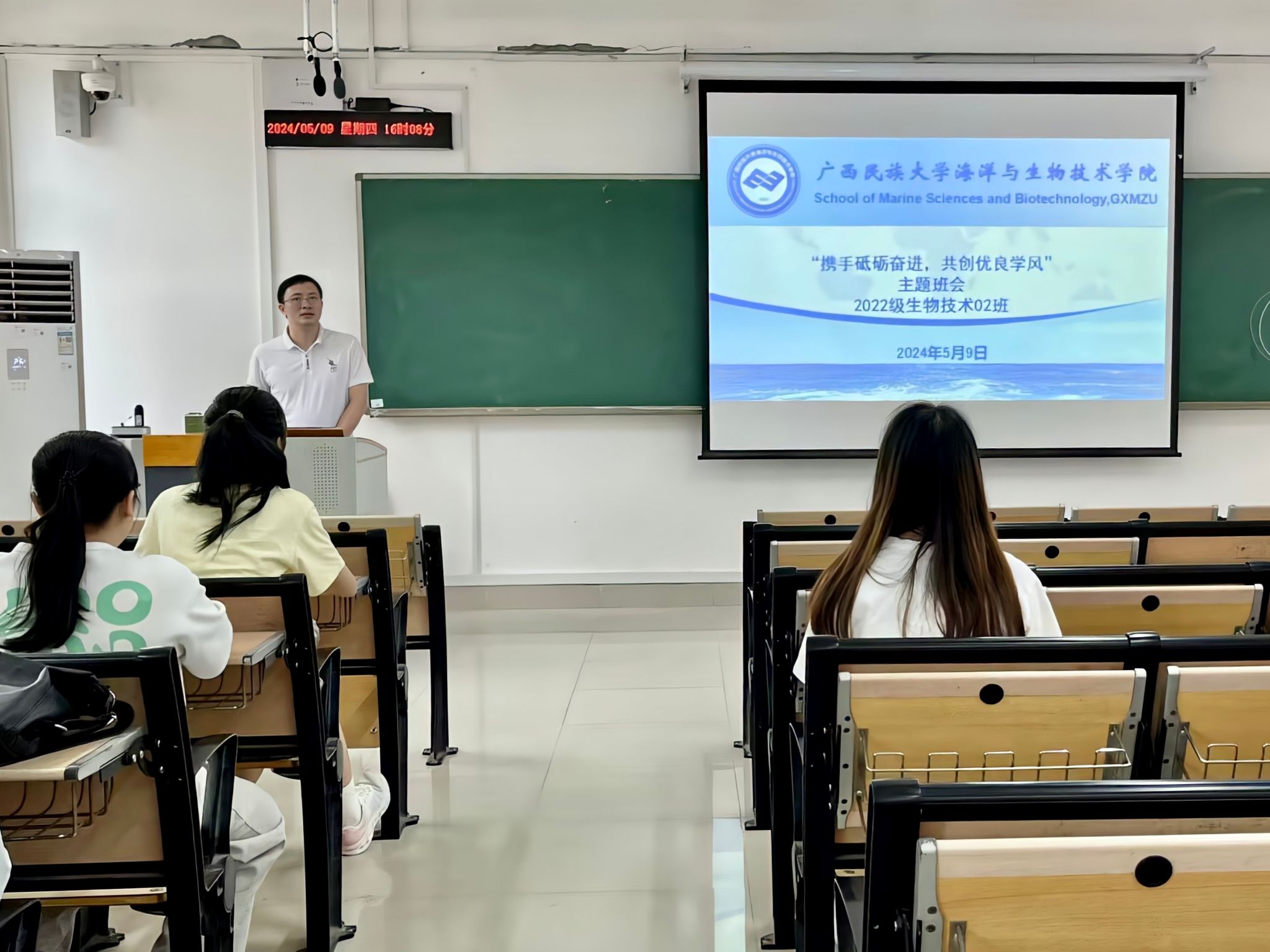 本次活动以“携手砥砺奋进,共创优良学风”为主题,主要包括最美学习笔记评选活动、“创建优良学风,弘扬中华优秀传统文化”主题书法比赛以及学风建设主题班会等一系列丰富多彩的活动。在主题班会上,各班班主任详细阐述了班会内容,通过互动问答、观看关于学风建设的视频等方式,引导同学们养成刻苦钻研、勤于思考、归纳总结的习惯,激发他们的自主学习潜能,同时强调了学风建设工作的严谨性及重要性,并呼吁同学们积极参与到活动中来。2023级生物技术02班班主任高乞在表示,我院通过全方位、多层次地开展学风建设系列活动,积极调动每位同学的学习热情,引导大家相互学习、共同进步,激发同学们的内在学习动力,从而有助于同学们树立热爱学习、善于学习、终身学习的正确观念。