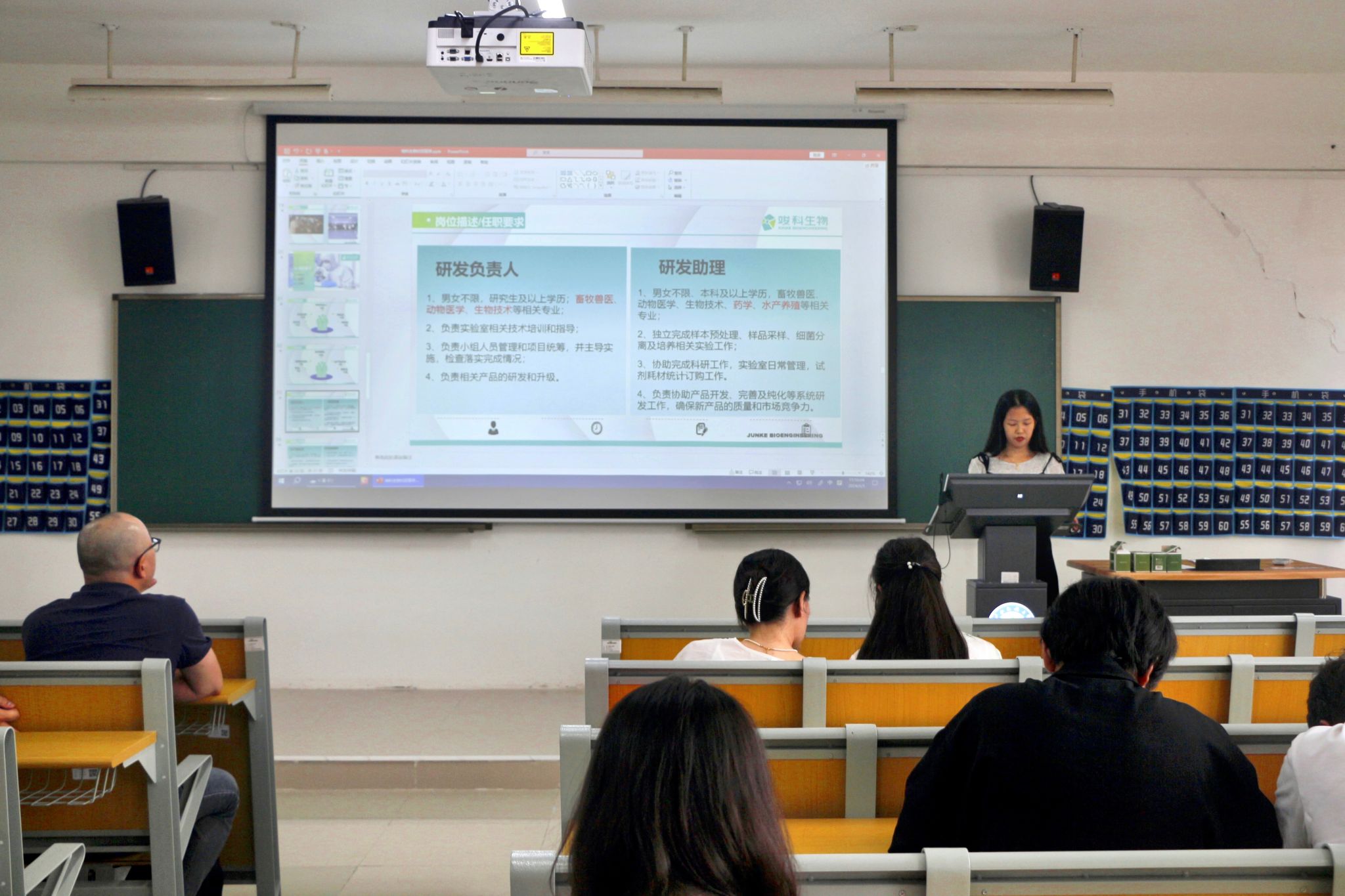 会上,苏会琳向同学们介绍了公司的基本情况、经营范围和校招要求,她重点介绍了公司在环境保护专用设备生产设计、畜牧渔业产品销售等领域取得的成就,并就公司目前的发展方向进行了介绍,阐述了公司的发展目标和发展规划。苏会琳结合公司经营范围和当下的行业热点,通过播放PPT和视频的形式向同学们展示了生物技术产业的主要业务和发展方向。她表示,21世纪是生物的世纪,希望同学们可以用饱满的热情投入到生物技术领域的建设当中,积极投身于这一领域的研究与实践,共同推动生物技术的进步,为人类健康和社会可持续发展贡献力量。