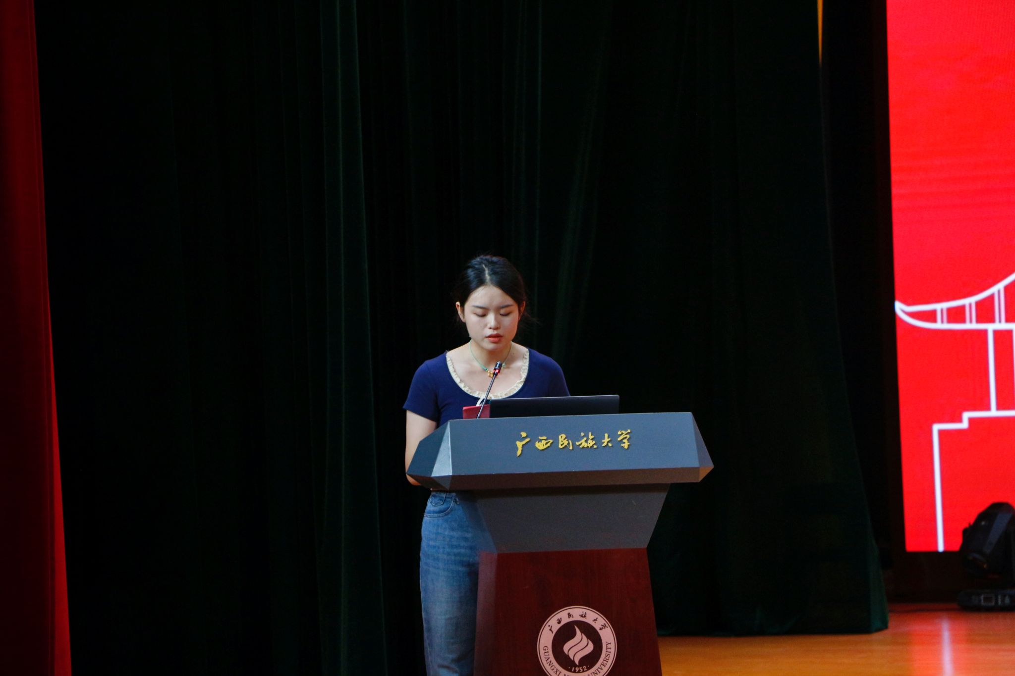 研究生新生2024级生物与医药隋晶莹作为研究生代表发言,她表示,在一众学子中考研上岸,是欣喜也是新的征程,她希望同学们牢记初心,认真学习专业知识,在未来,共同为建设科技强国贡献力量。