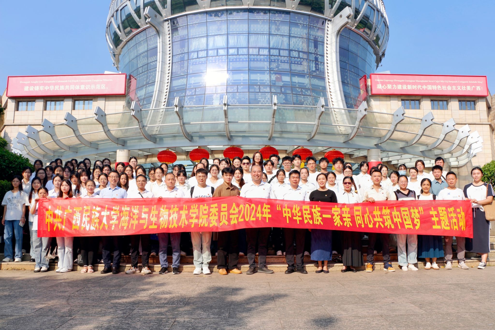 为深入学习贯彻党的二十大精神,引导我院师生党员牢固树立正确的中华民族历史观,自觉增强休戚与共、荣辱与共、生死与共、命运与共的中华民族共同体理念,10月8日下午,必威西汉姆联党委组织师生党员代表赴广西民族博物馆参观“广西铸牢中华民族共同体意识历史文化展”。
