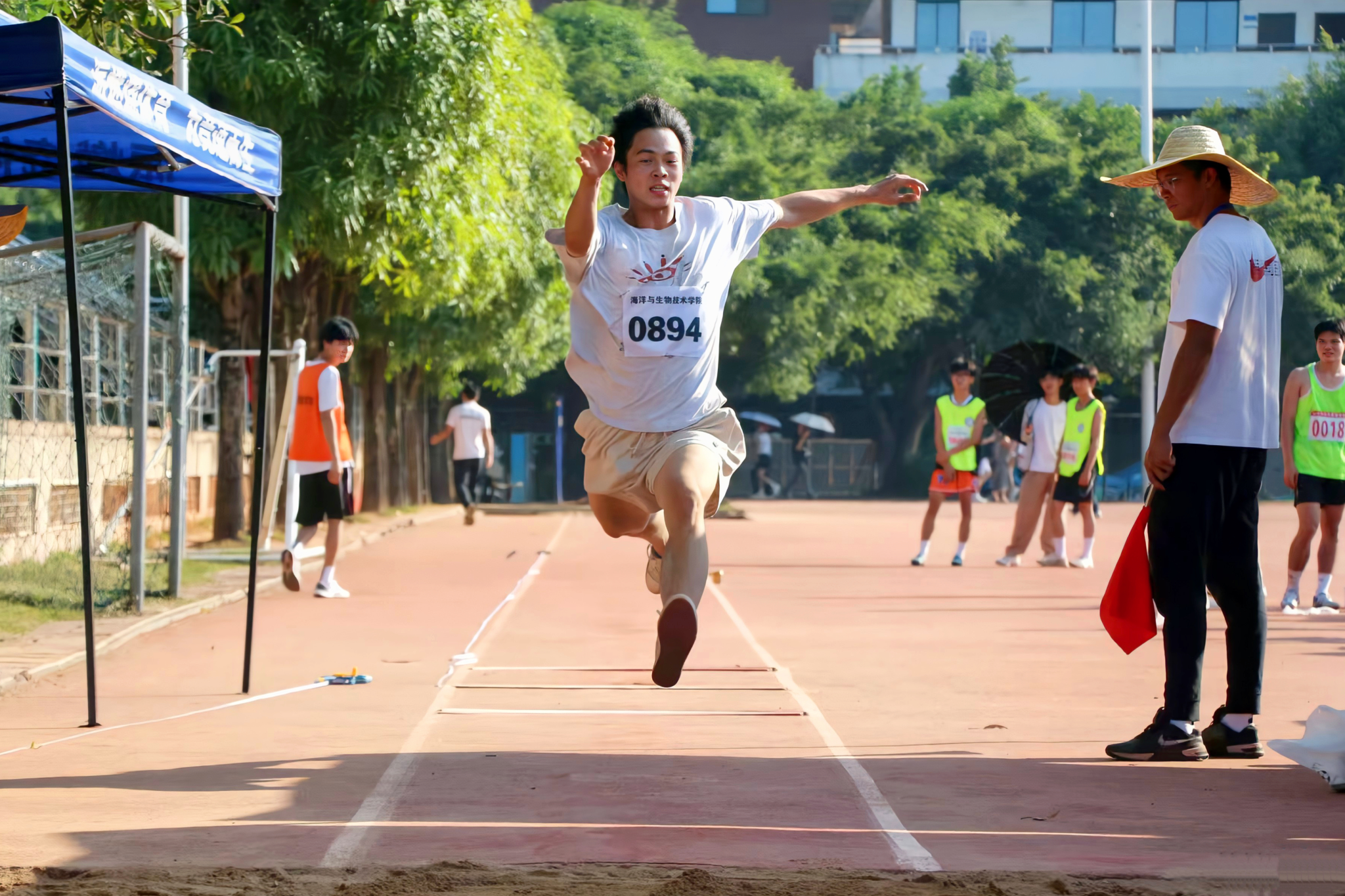 开幕式上,由我院师生代表组成的方块队踏着铿锵有力的步伐,精神抖擞地迈入会场,以气势如虹的姿态展现了我院团结协作、奋力拼搏的精神风貌。赛场上,我院跳高运动员们轻盈一跃,铅球运动员们全力投掷,短跑运动员们如疾驰的箭,在赛场上奋勇争先。他们全力以赴,挑战自我,矫健的身姿成为校园中最靓丽的风景线,也体现出了高超的竞技水平和顽强的毅力。集体项目中,考验的不仅是运动员们的体力与技巧,更是团队速度与默契的完美结合,我院运动员们齐头并进,将“人心齐泰山移”的精神诠释得淋漓尽致,一幕幕场景彰显了海生学子团结、拼搏、进取的昂扬姿态。