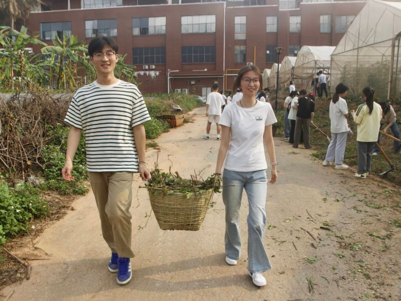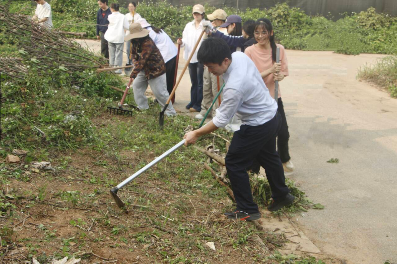 活动当天,党员们热情高涨。在明确任务分工后,他们迅速行动,手持锄头、铲子、镰刀等各式工具,迅速投入到除草工作中。大棚外,烈日当空,杂草丛生,但这一切都无法撼动党员们坚定的决心。党员师生们并肩作战,不怕脏、不怕累,配合默契,展现出强烈的团队精神。他们有的手握锄头,以娴熟的手法和有力的动作,将杂草连根铲除;有的挥舞镰刀,动作高效而流畅,以秋风扫落叶的速度削下一大片杂草;还有的则凭借耐心与毅力,徒手拔除那些顽强扎根的杂草。在大家的共同努力下,除草工作有条不紊地推进。