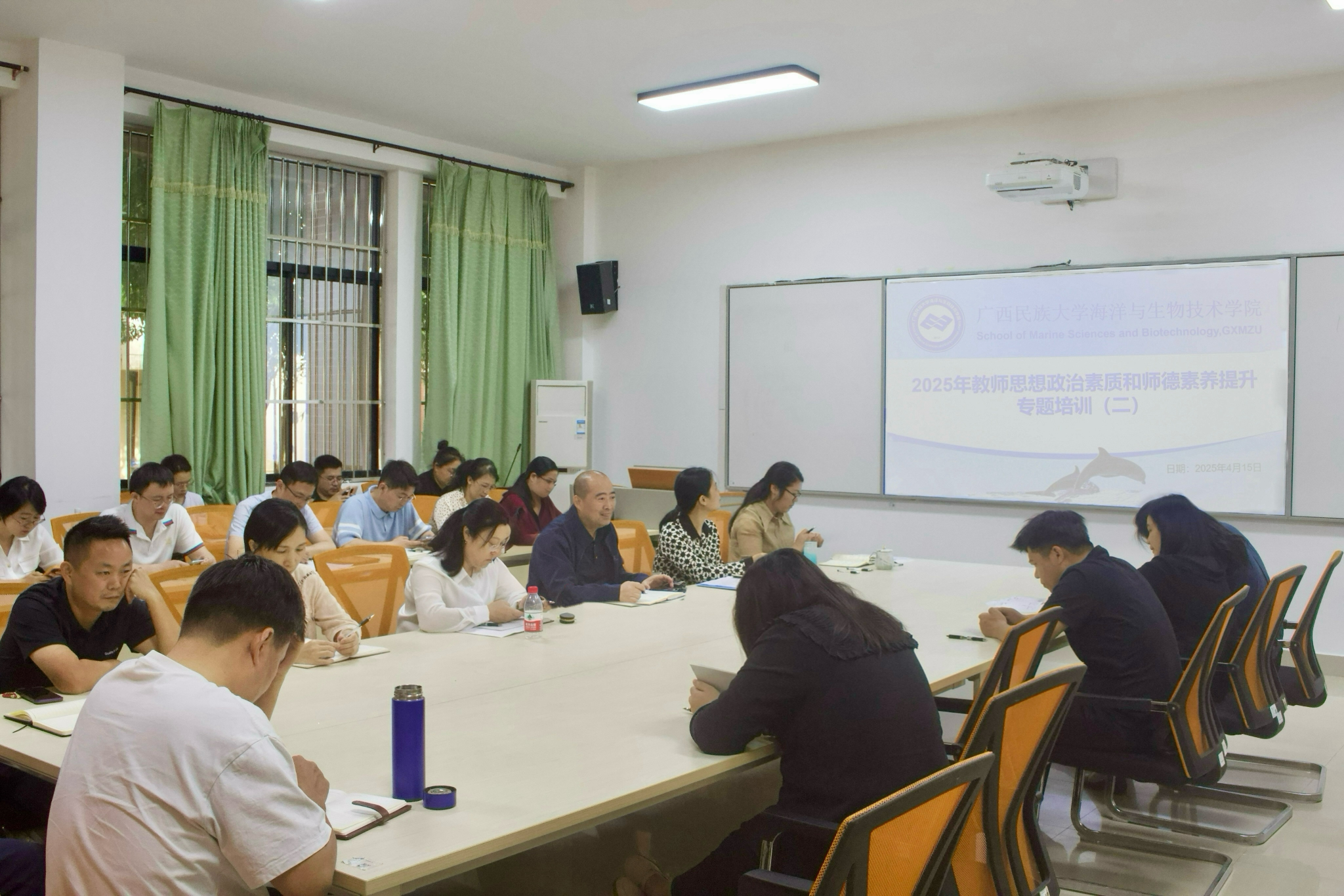 4月15日下午,为提升教师思想政治素质和涵养师德,我院在明德楼123会议室开展2025年教师思想政治素质和师德素养提升专题培训会,全体教职工与会,会议由学院党委书记刘红全同志主持。