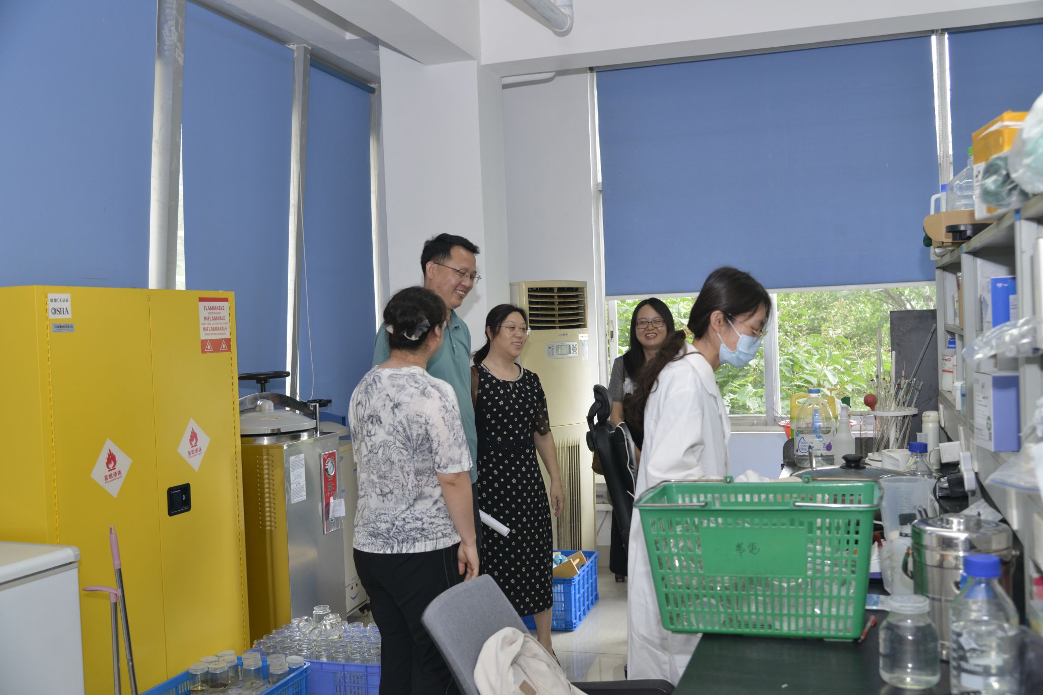 会后,调研组一行实地考察了科研实验室、珍稀濒危药用植物保育技术体系及种质资源库,参观了标本馆、展览馆及科普教育创新项目,并专程看望了学院正在广西药用植物园实习实践的学生。