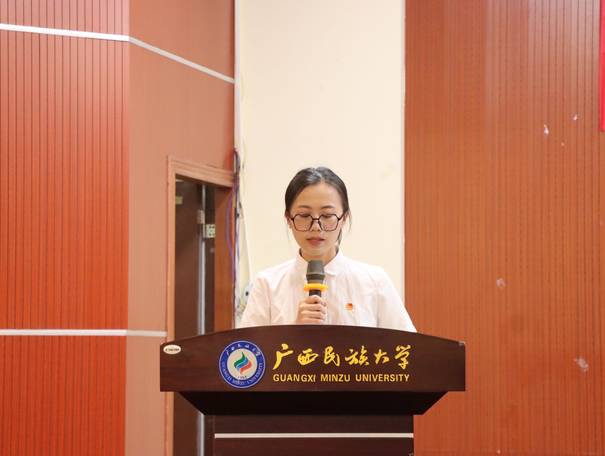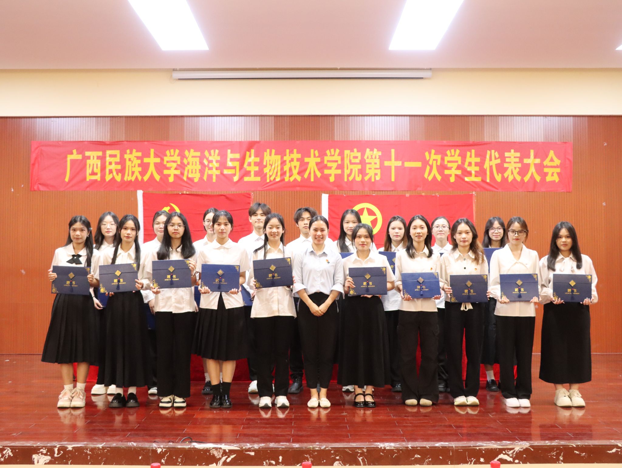 李金芬为第十届团委委员、第十届学生会委员及各部门部长颁发聘书。新当选委员代表邓雅云宣读倡议书。
