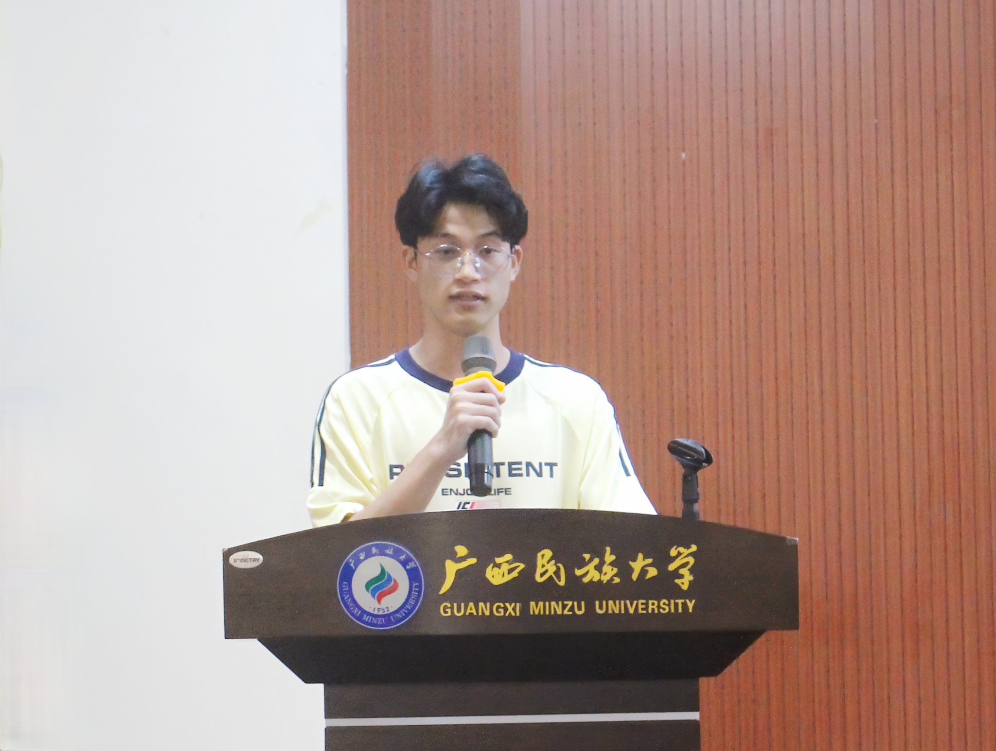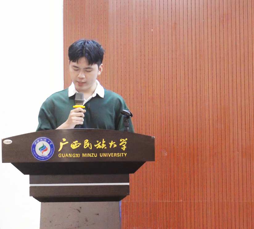 学生代表发言环节,2022级生物化学与分子生物学研究生谢勇俊、2021级海洋科学01班何俊霖作为学生代表分别发言,二人首先对母校培育、资助方帮扶表达了感谢,回望在民大求学路上的点点滴滴,他们动情寄语在座同窗:珍惜机遇、奔赴更广阔的未来!