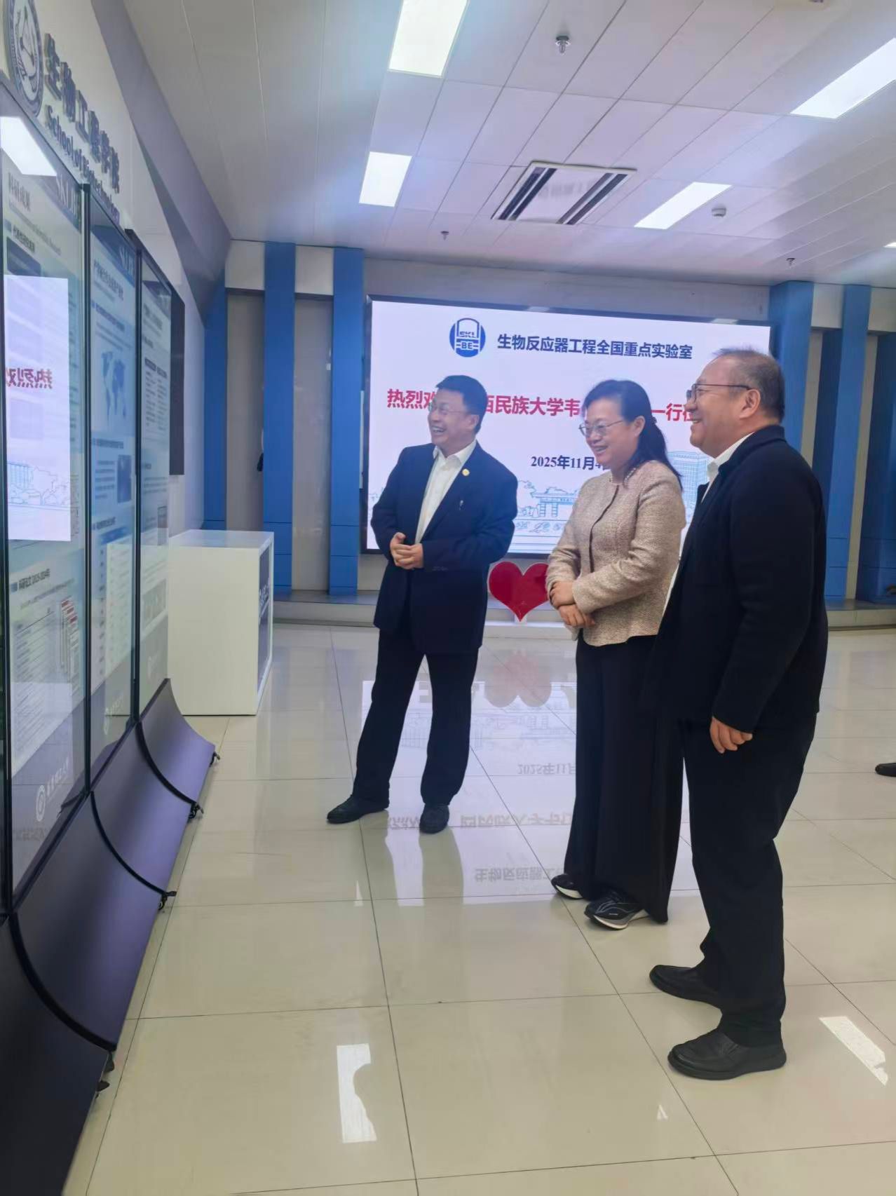 会后,韦仕珍校长一行还实地参观了华东理工大学生物反应器工程全国重点实验室,详细了解实验室的科研设施、研究方向、成果转化及团队建设情况。