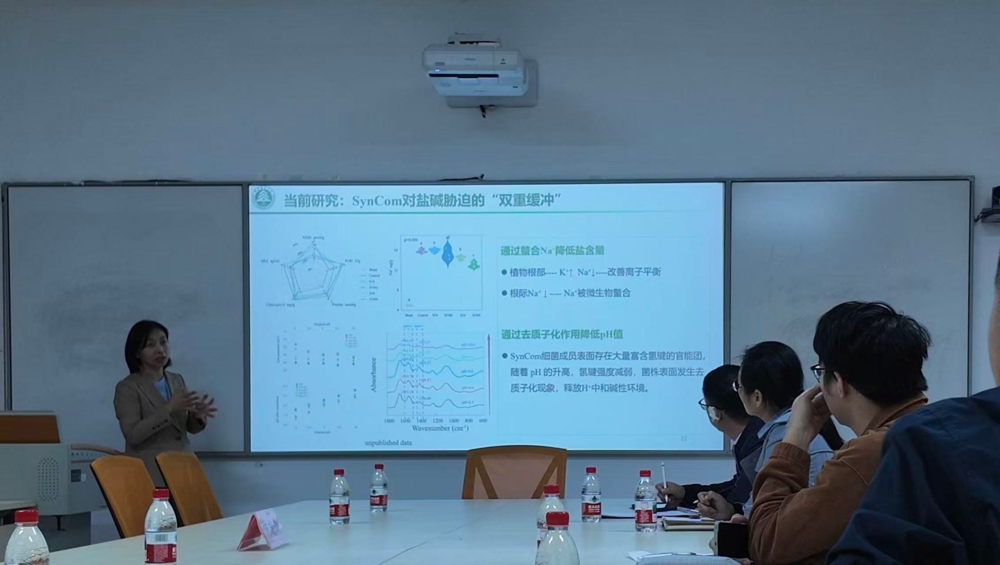 2025年11月24日下午,我院特邀北京林业大学何晓青教授在思源湖校区明德楼123会议室,作了一场题为“合成微生物菌群(SynComs)的构建及其在缓解植物盐碱性胁迫和促进养分吸收方面的机制”的学术前沿报告。此次活动吸引了学院约50名师生参与,现场学术氛围浓厚,交流互动热烈。