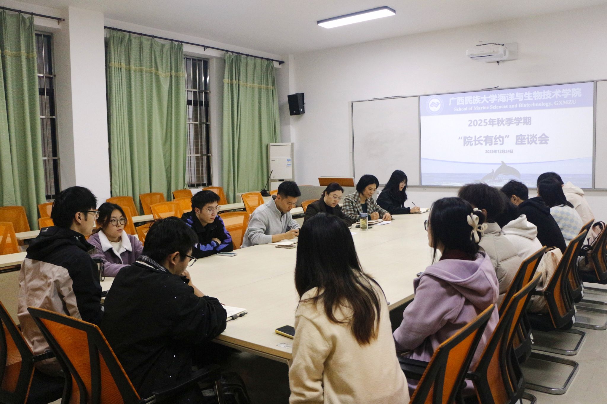 为畅通师生沟通渠道,精准对接学生需求,12月24日上午,我院于明德楼123会议室召开2025年秋季学期“院长有约”座谈会。院长王一兵,党委副书记黄秋艳,辅导员苏启源,研究生各班班长及海洋科学专业全年级各班班长参会。