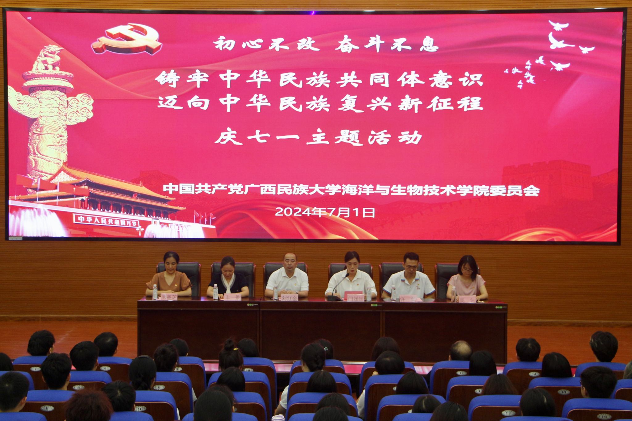 7月1日下午,必威西汉姆联党委于明德楼101报告厅举行“铸牢中华民族共同体意识,迈向中华民族复兴新征程”庆七一主题活动。学院党委委员、全体师生党员、入党积极分子代表齐聚一堂,共同见证这一庄严时刻,本次活动由学院党委副书记门媛媛同志主持。