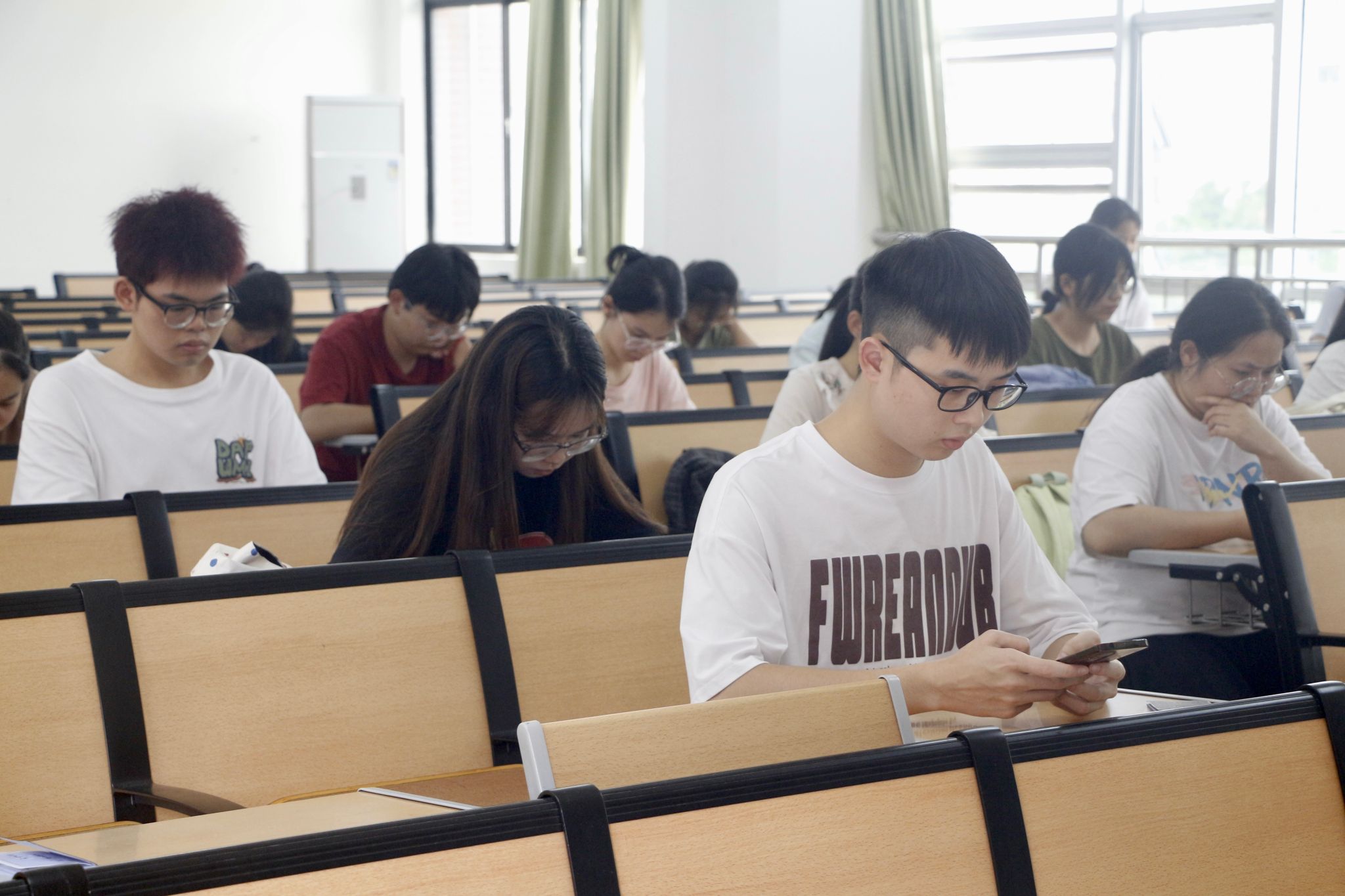 本次初赛采用线上答题的形式进行,参赛选手使用手机易班APP进行答题。竞赛题型设有选择题、判断题和填空题,竞赛题目内容涵盖海洋地理、海洋生物、海洋政策法规与权益等知识。赛程中,选手们沉着冷静,全神贯注,反复推敲每一个答案,监考员积极维护考场秩序,为选手们创造安静、严肃的答题环境。现场气氛紧张有序,充分展现我院学子求知若渴、积极进取的美好精神。