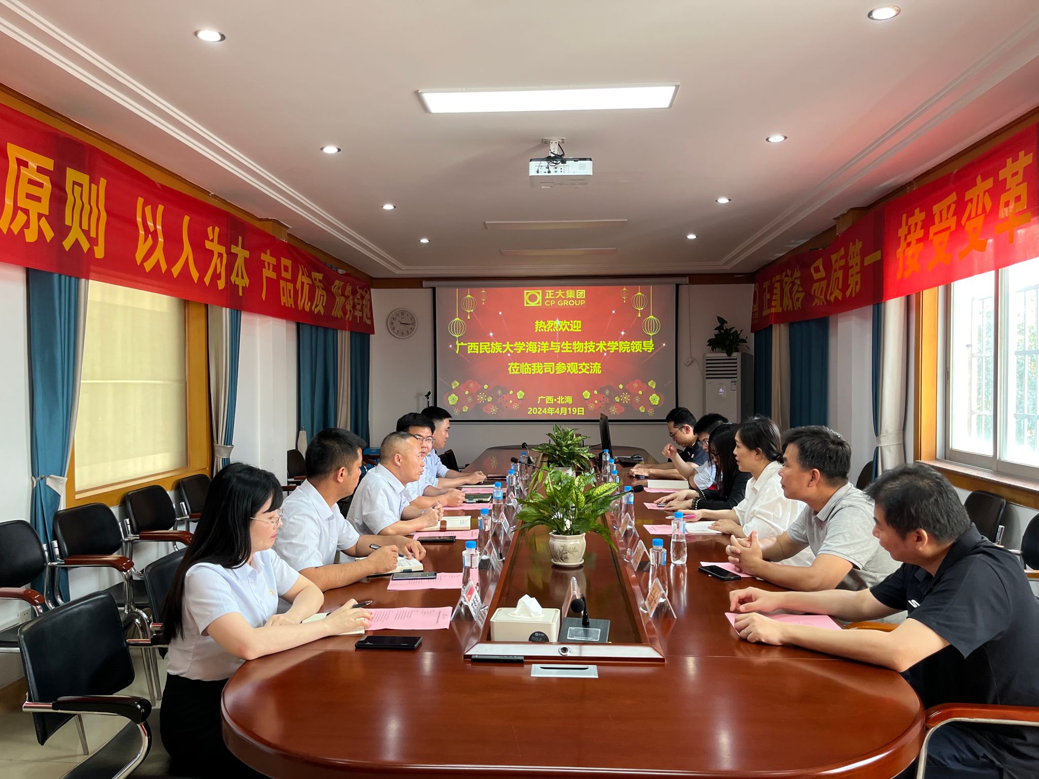 李志国简要介绍了公司的整体概况、基地建设和发展历程,公司岗位需求,明确了对实习生的职业素养和职业能力的要求,并期待更多的毕业生到正大集团卜蜂水产有限公司就业。