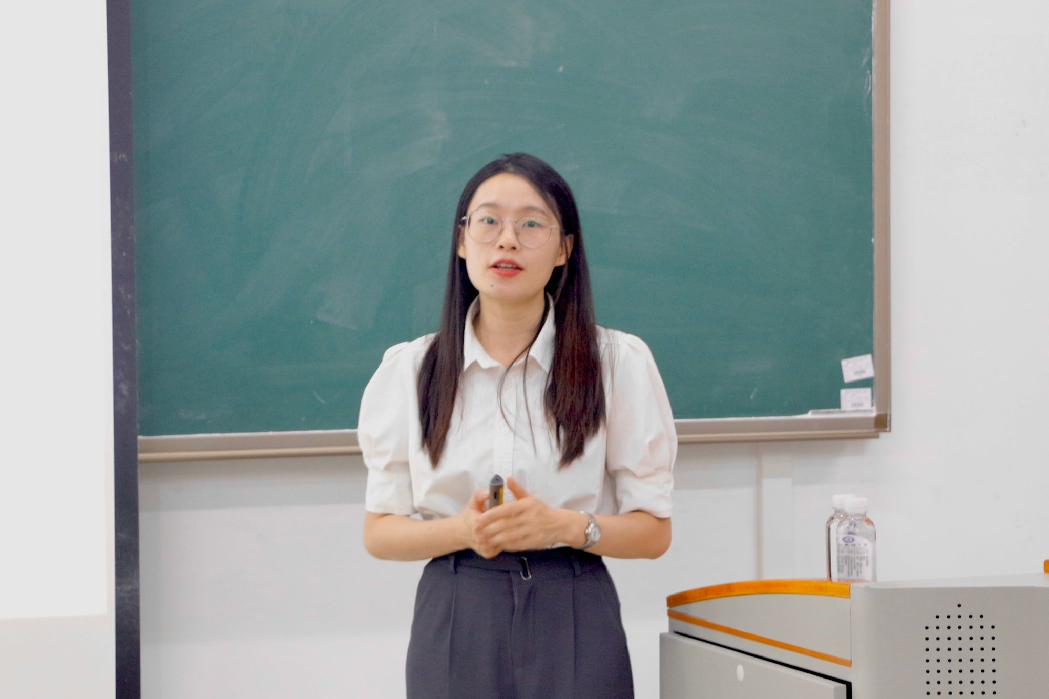 会上,莫霜露首先以播放宣传片的形式向同学们展示了公司背景,发展理念,经营模式,管理制度以及业务发展发向等方面内容。随后,她详细介绍了公司的就业前景,国际市场以及此次面向校园招聘的岗位及人员要求等信息。她强调,扬翔集团股份有限公司重视人才的培养和选拔,帮助员工不断提升技能和职业素养,致力于为员工提供广阔的职业前途和学习空间。针对同学们提出的问题,莫霜露进行了耐心地解答,并鼓励同学们积极参与公司的面试,现场气氛热烈。