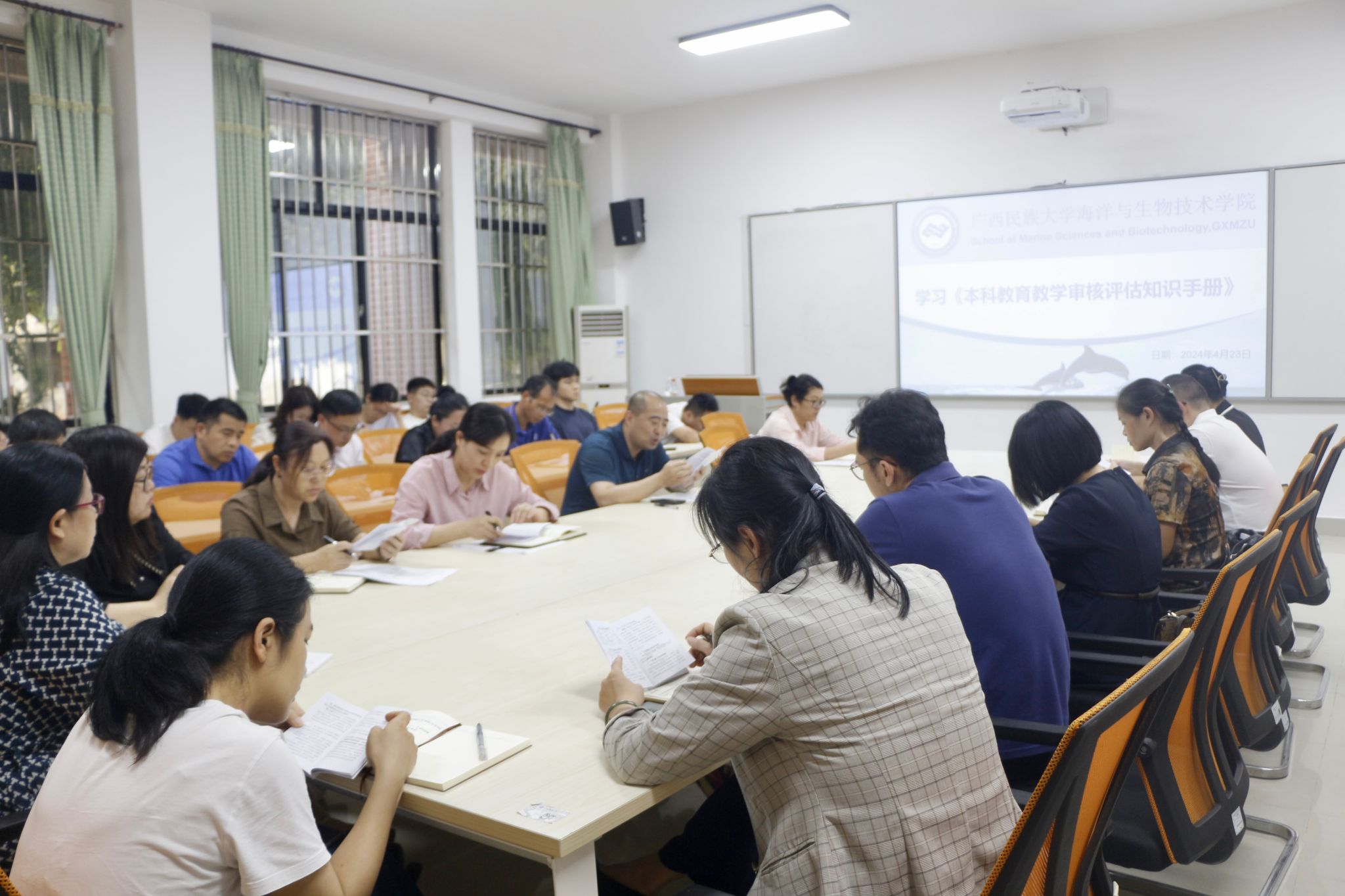 为进一步提高我院全体教师对教学评估工作的认识,确保审核评估工作的顺利进行。4月23日下午,我院于明德123会议室召开学习《本科教育教学审核评估知识手册》专题会议,学院党委书记刘红全,党委副书记门媛媛,副院长王一兵、张琴及全体教师出席本次会议,会议由刘红全主持。