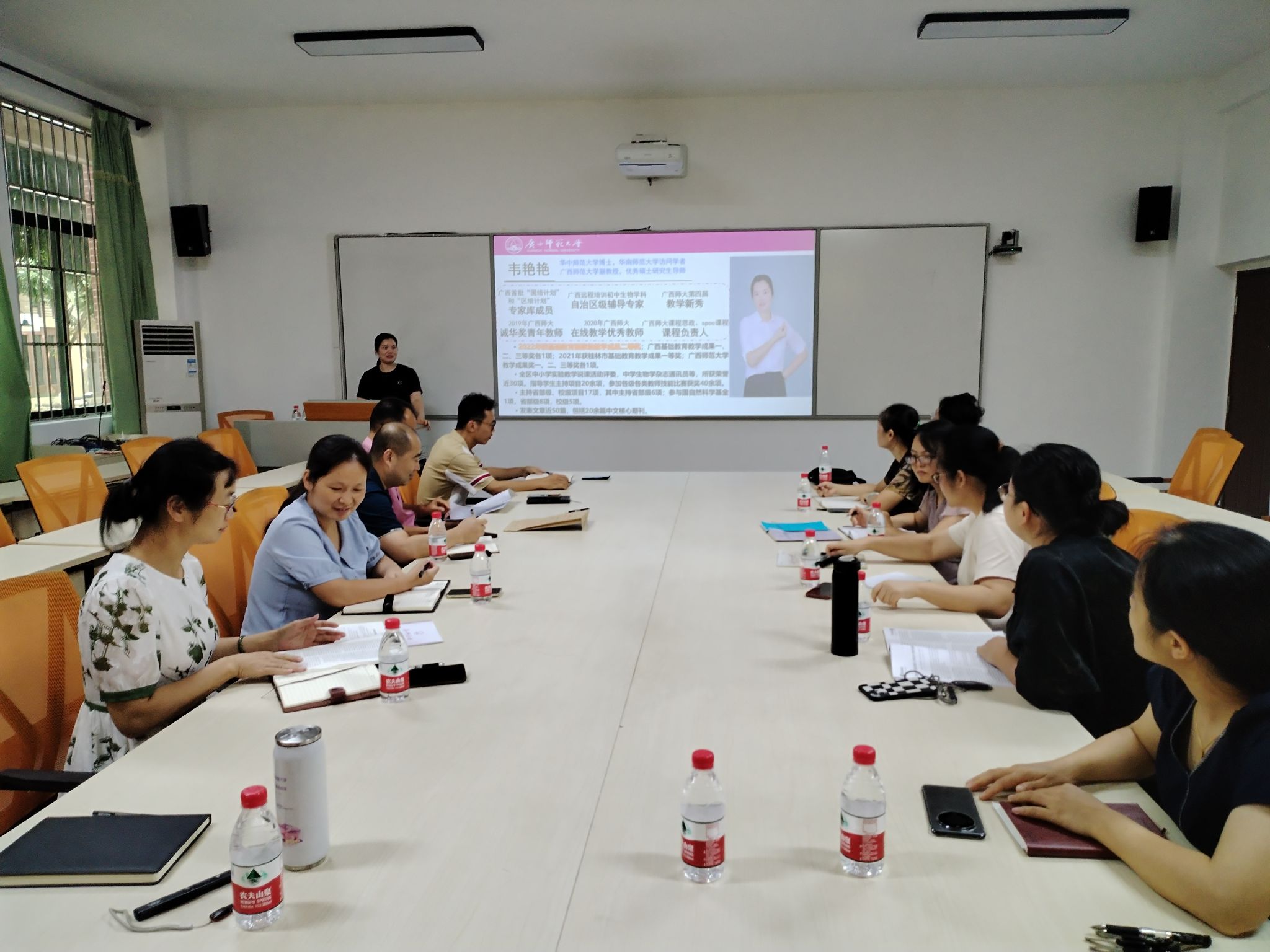会议邀请了广西师范大学生命科学学院副教授韦艳艳现场指导。她对当前师范生教学研究类毕业论文的现状进行了深入分析,并强调了教学研究类毕业论文在师范生综合素质培养中的重要性。随后介绍了广西师范大学生命科学学院的毕业论文改革方案,包括论文选题、研究方法以及论文撰写规范等方面。